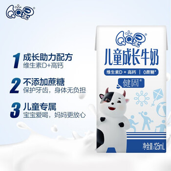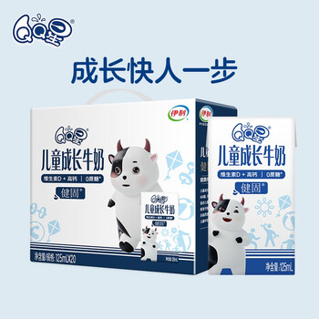 伊利 QQ星儿童成长牛奶健固型125ml*20盒/箱 维生素D 学生儿童高钙牛奶 0添加蔗糖 学生营养早餐伴侣礼盒装