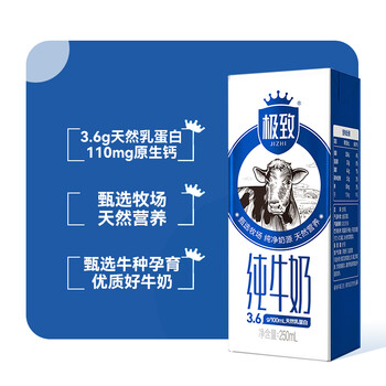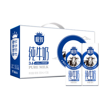 三元 极致高品质全脂纯牛奶250ml*12礼盒装 每100ml含3.6g乳蛋白