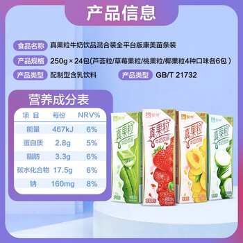 蒙牛 真果粒牛奶饮品(草莓+芦荟+椰果+桃果粒)250g*24 四种口味缤纷礼盒装(新老包装随机发货)