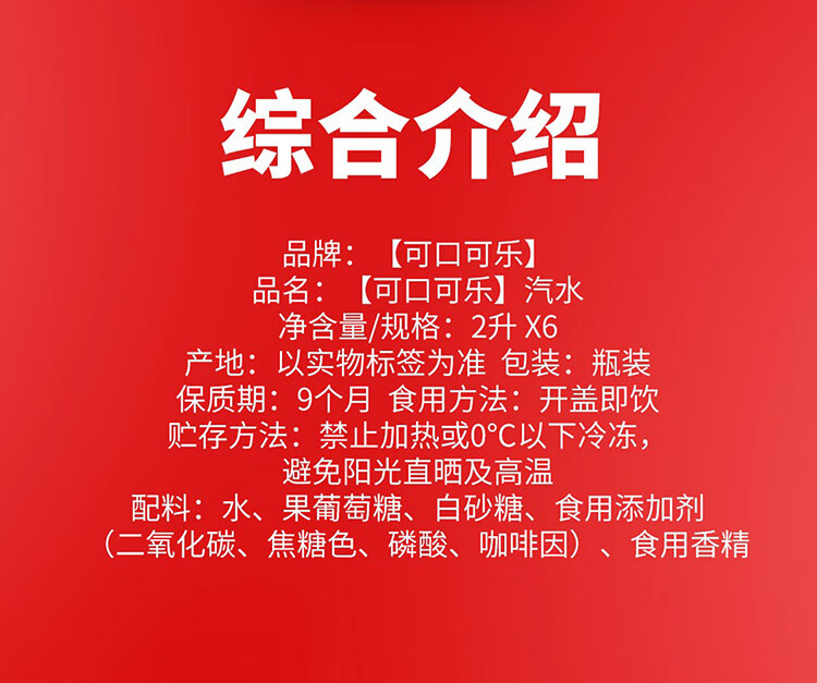 可口可乐 Coca-Cola 汽水 碳酸饮料 2L*6瓶 整箱装 可口可乐出品 新老包装随机发货