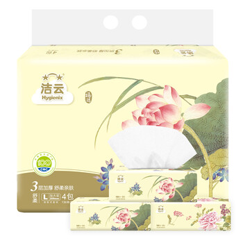 洁云(Hygienix)抽纸 福瑞国色3层136抽面巾纸*4包 新升级加大规格 抽取式面巾纸 纸巾 加大幅 ¥20元