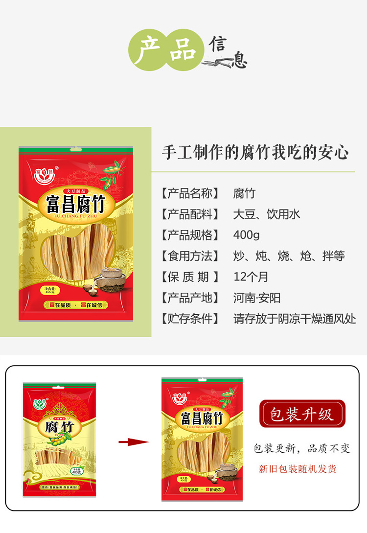 富昌 南北干货 腐竹400g 手工制作黄豆制品 火锅凉拌 豆皮腐皮 干豆腐皮