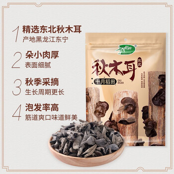 十月稻田 东北秋木耳 150g 黑木耳小木耳 肉厚无根小秋耳 山珍南北干货 火锅食材凉拌炒菜