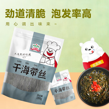 吉得利 干海带丝 均匀厚丝干净无沙 昆布丝凉拌煲汤火锅 裙带菜 不熏不掺不染 海产南北干货 150g/袋