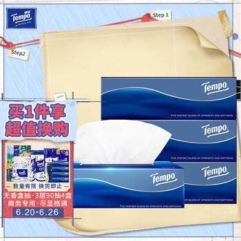 得宝(Tempo) 抽纸/盒抽 3层90抽*4盒 高端面巾纸 纸巾 天然无香